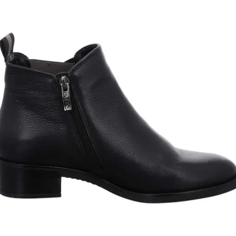 This lightweight ankle boot made of smooth leather scores with its casual and dynamic style. The shoe is suitable for cold autumn and winter days because it is equipped with a fluffy warm lining. This keeps the feet warm and creates a pleasant feeling. The innovative High Soft technology promises special comfort. It combines the soft leather upper with a comfortable insole and thus guarantees a silky-soft tread and absolute walking pleasure. The softly padded and comfortable removable foot bed can easily be replaced with your own insoles. With the side zip quickly putting the shoes on and taking them off is no problem. The shoe gets its wonderful fit from the wide elastic band on the side. Due to the block heel the shoe looks wonderfully feminine. Combined with a wide casual jeans and a thick cardigan this boot by Ara is a must-have for a relaxed meeting with friends.