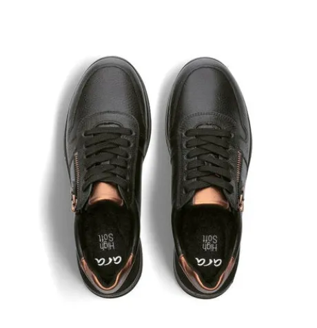 Easy going through the day with this ultra-light and sporty sneaker by ara. The leather upper is silky soft and encloses perfectly the foot. Thanks to the comfortable width, your feet have got enough space. The soft all around padding offers even more comfort. Thanks to the combination of lacing and zip fastener the shoe can easily be put on and taken off and can be perfectly adapted to your needs. On the inside, the shoe is equipped with soft terry cloth which ensures a pleasant foot climate and absorbs moisture. The removable footbed is also covered with terry cloth and therefore dries quickly.