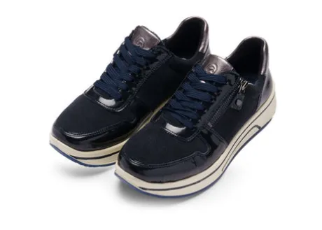 Easy going through the day with this ultra-light and sporty sneaker by ara. The leather upper is silky soft and encloses perfectly the foot. Thanks to the comfortable width, your feet have got enough space. The soft all around padding offers even more comfort. Thanks to the combination of lacing and zip fastener the shoe can easily be put on and taken off and can be perfectly adapted to your needs. On the inside, the shoe is equipped with soft terry cloth which ensures a pleasant foot climate and absorbs moisture. The removable footbed is also covered with terry cloth and therefore dries quickly.