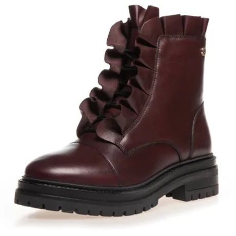 A stylish boot in deep Bordeaux leather that stands out with its warm tone and fine details. The model features a frill edge and decorative lace-up front as well as a zip on the inside. The soft insole and lightweight sole make it comfortable to walk in – even for long days in the city or at the office.