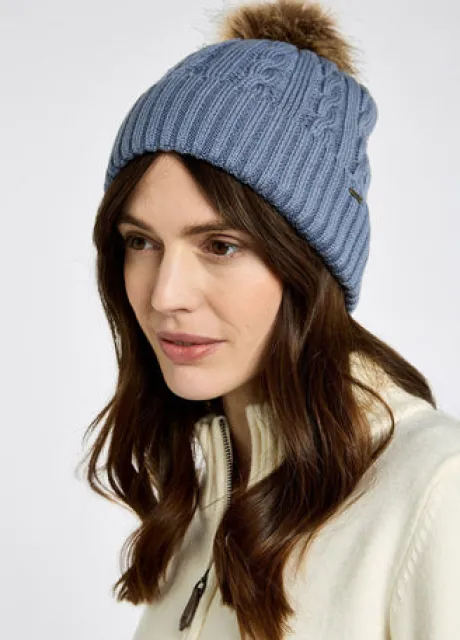 Our Forester bobble hat has a distinctive cable knit stitch, edged with ribbed hat band and topped with a beautifully soft faux fur bobble. The Alpaca, wool, cashmere and rayon mix yarn offers warmth, softness and breathability making this a real luxury purchase, and excellent gift.