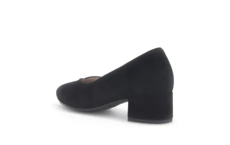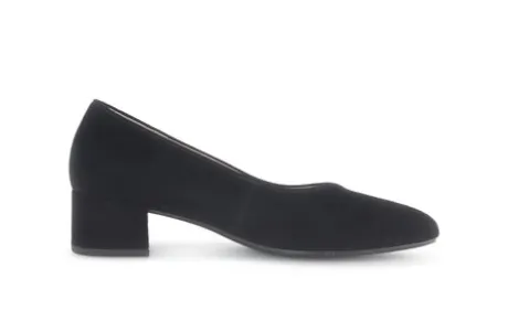 In a timeless closed-toe design, this court shoe boasts an easy-on fit with soft suede uppers and sturdy synthetic soles. A short block heel elevates smart-casual looks, while a classic yet simple shape complements evening attire.