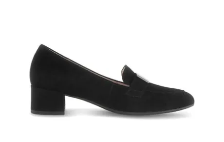 In a timeless closed-toe design, this court shoe boasts an easy-on fit with soft suede uppers and sturdy synthetic soles. A short block heel elevates smart-casual looks, while a classic yet simple shape complements evening attire.