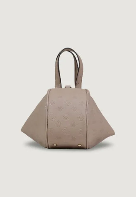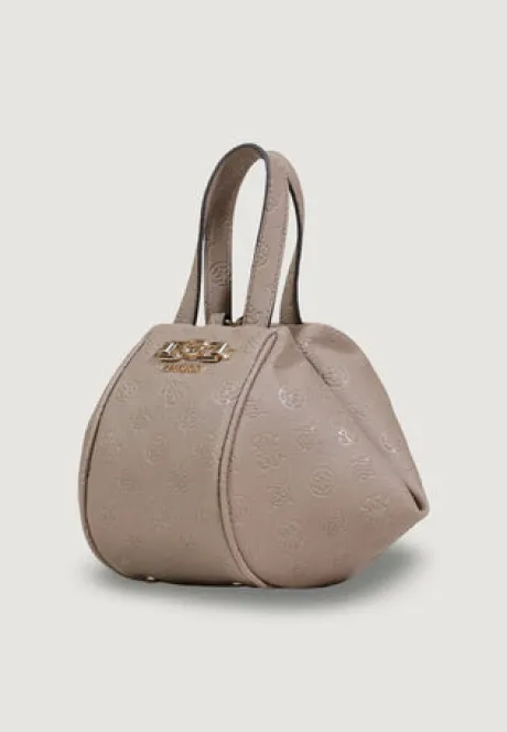 The Guess ANISE TOP HANDLE POUCH is the perfect small handbag for women seeking a sophisticated and modern accessory. Made from 100% polyurethane, this bag stands out for its unique geometric shape and contemporary design. The embossed Guess logo elegantly decorates the surface, while the metallic closure adds a refined touch.