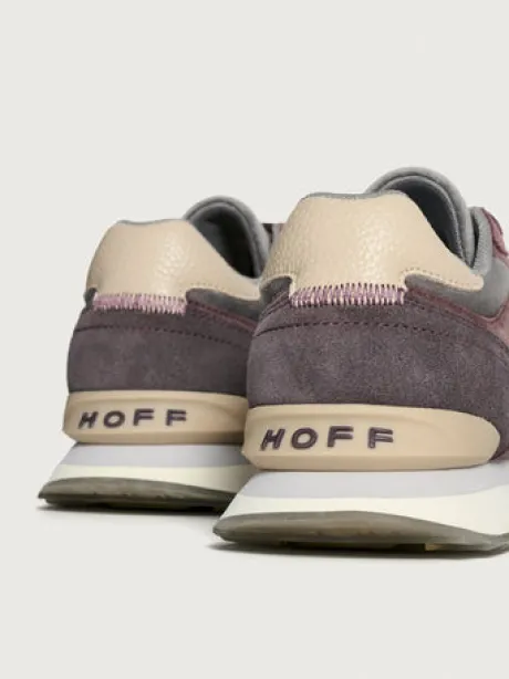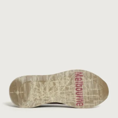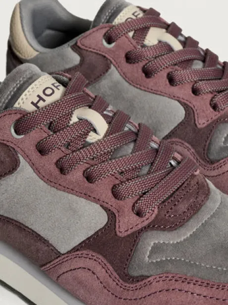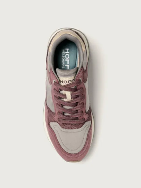 Retro-style sneakers combining different materials and colors. Embroidered logo detail on the back. Closure with laces.
