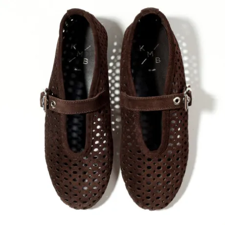 This is a style that stands out for its lightness and natural texture. Crafted with a cut out suede, this Mary Jane flat brings a handcrafted feel to a simple, everyday silhouette. The strap across the instep adds definition while keeping the design balanced and easy to wear. Set on a flat TPU rubber sole, that is flexible and practical, making it a reliable choice for warm days in the city or on holiday. Style it with linen trousers, summer dresses, or relaxed tailoring for a fresh, natural look.