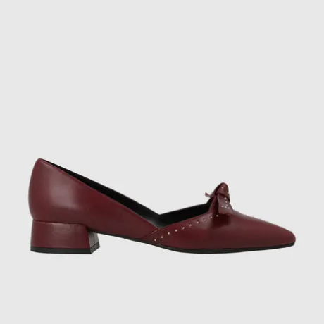 Tone-on-tone leather bow detail, a basic that will add a touch to most of your looks. Designed with a wide leather heel of 2 cm in height. Pointed toe and rounded neckline. Lined interior in recycled polyester and leather insole. Includes new gel insole for greater comfort in every step. Made in Spain.