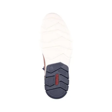 Rieker mens smart casual shoes in tan with navy blue accents. These feature a two-tone sole and stitch detail.