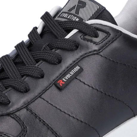 Men’s wide-fit trainers in black with grey details, Riker logo tag, and a contrasting white sole.