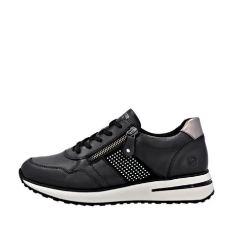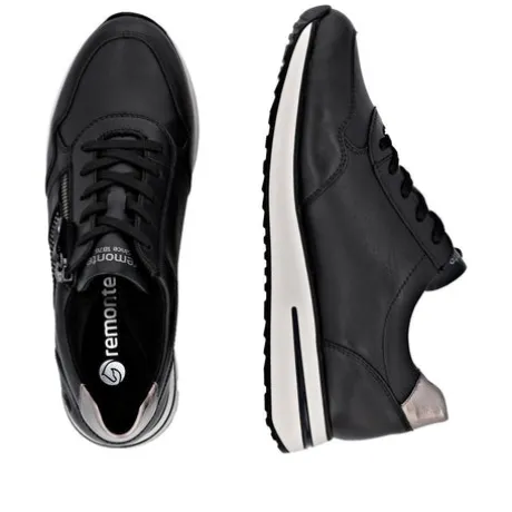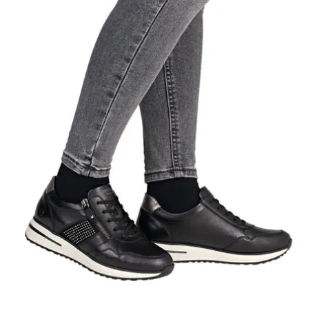 Style and comfort – the perfect duo! These Remonte low-top sneakers are made of smooth leather come in a classic color scheme that simply fits anything! The clever combination of lacing and zipper makes it easy to put on and take off the shoe. A flexible and cushioning sole and the padded and removable insole are further arguments for this model. The sneakers are equipped with a light micro-velour lining.