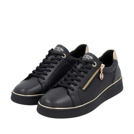 Style and comfort – the perfect duo! These Remonte low-top sneakers are made of smooth leather come in a classic color scheme that simply fits anything! The clever combination of lacing and zipper makes it easy to put on and take off the shoe. A flexible and cushioning sole and the padded and removable insole are further arguments for this model. The sneakers are equipped with a light micro-velour lining.