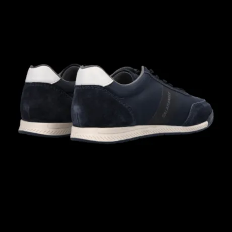 Sporty style meets comfort: this dark blue sneaker made of soft suede and high-quality textile is your ideal companion for every day. Breathable mesh lining ensures a fresh foot climate, while the lightweight profiled sole provides a pleasant walking experience. Elastic laces make putting them on and taking them off especially comfortable.
