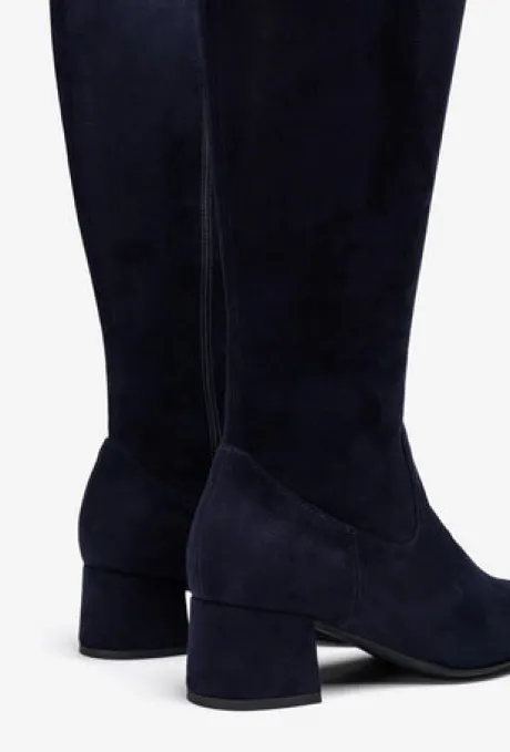 Square toe boots made in leather and faux leather stretch fabric with a zip on the inside. Matching tone wide heel that is 6cm high. A light, flexible and non-slip rubber sole.