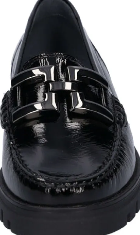The H-Serena moccasin by Waldläufer is a masterpiece of shoemaking for women who value quality and style. Its patent leather in classic black exudes elegance, while the leather lining and leather insole guarantee a luxurious feel. Thanks to the innovative air-cushioned sole (Rubflex), you can enjoy every step in this shoe with no fastener. With the width H, the H-Serena is the ideal companion for anyone looking for comfort and beauty in one shoe.