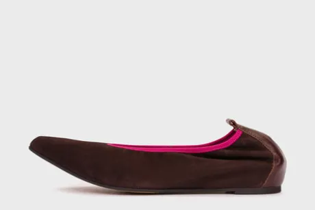 TRIANA 32 ballerinas crafted from black mixed leathers with a contrasting blue trim. This comfortable and versatile design features a pointed toe and a subtle contrast of smooth leather and suede, enhanced by the blue edge along the topline. The low internal wedge subtly elongates the foot without compromising comfort. The MemoryGel insole ensures cushioned comfort with every step