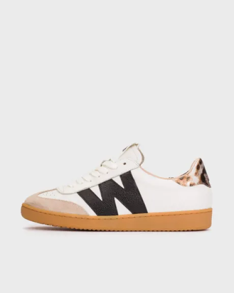 This model features a retro and timeless design. It stands out for its metallic-finish leather and the contrasting “W” on the outer side. The fit is secured with traditional laces. Its caramel-colored sole offers great flexibility, while the MemoryGel insole ensures cushioned comfort with every step
