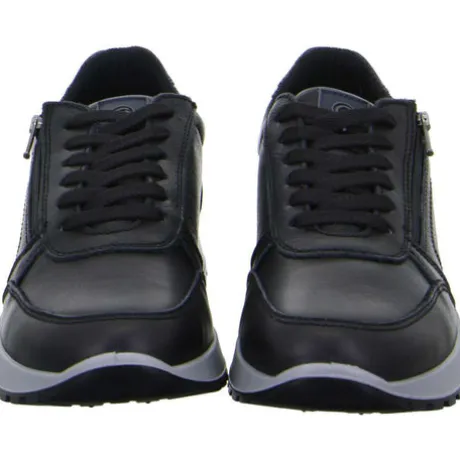 The simple men’s shoe by ara is made of high-quality and robust leather and impresses with its timeless design and sporty look. The inside of the shoe is lined with textile, as is the footbed. It is particularly comfortable due to the soft padding and can be changed at any time and replaced with other insoles. The lacing promises perfect adaptation to your own needs. With the help of the zip closure on the side one can quickly put on and take off the shoes. The soft, non constricting all-round padding on the shaft which adapts wonderfully to the foot ensures maximum wearing comfort. The wedge sole not only looks casual and sporty, it also provides good thermal insulation and, thanks to the profile, has a slip-resistant effect. The ara low shoe is an absolute must for sporty men who like to be active in their free time and are on the move a lot. Get your pair now.