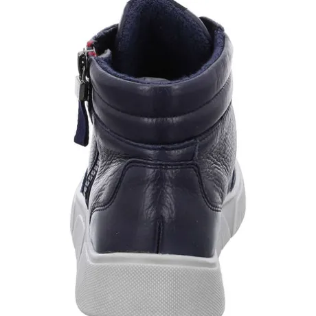 This simple and timeless sneaker is not only the ideal footwear for sporty women. The robust, slip-resistant sole creates an excellent grip. In addition, the thick platform sole looks particularly trendy. The silky-soft leather upper embeds the foot wonderfully and does not constrict. The soft padding on the shaft ensures a pressure-free hold. Thanks to the lacing the shoe can be perfectly adapted to your own needs. The zip closure on the side makes it easy to put the shoes on and take them off. Inside, the shoe is equipped with a soft textile lining made of terry cloth. The bamboo-based fibre absorbs moisture very well, dries quickly and thus ensures a good foot climate. The comfortable and softly padded foot bed – also covered with terry cloth – can be removed quickly and easily and replaced with your own inserts. This sporty lace-up goes particularly well with casual jeans and complements the perfect casual style.