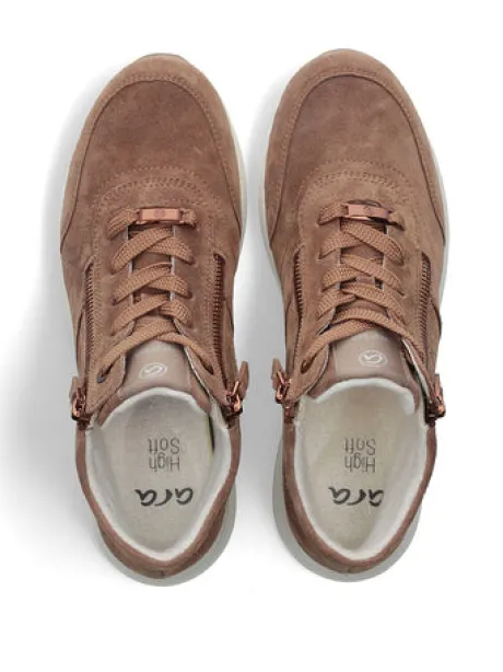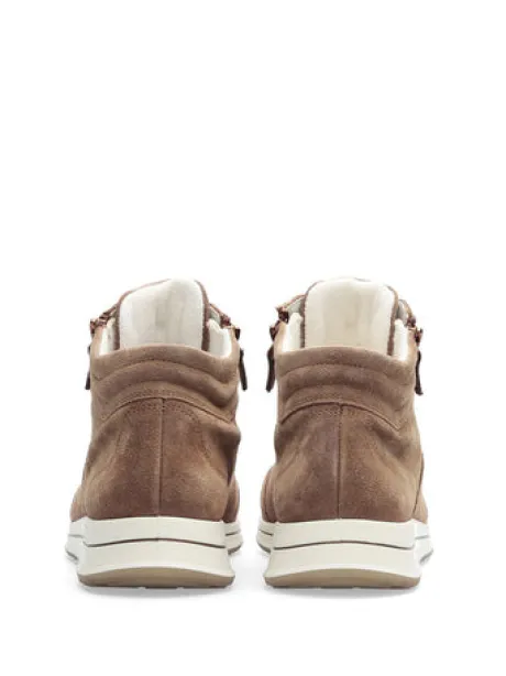 The high-top sneaker by ara positively affects your wellbeing! Soft leather creates a wonderful look that convinces right away. The shoe is particularly comfortable thanks to the soft all-round padding on the shaft which prevents the development of unpleasant pressure points. In addition to the lacing, the two zip closures on the side simplify putting the shoes on and taking them off. The soft bamboo-based terry cloth lining ensures true moments of wellbeing. This material is very comfortable to wear and ensures an excellent foot climate as it absorbs moisture wonderfully and dries quickly. The changeable footbed is not only softly padded but also covered with terry cloth