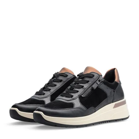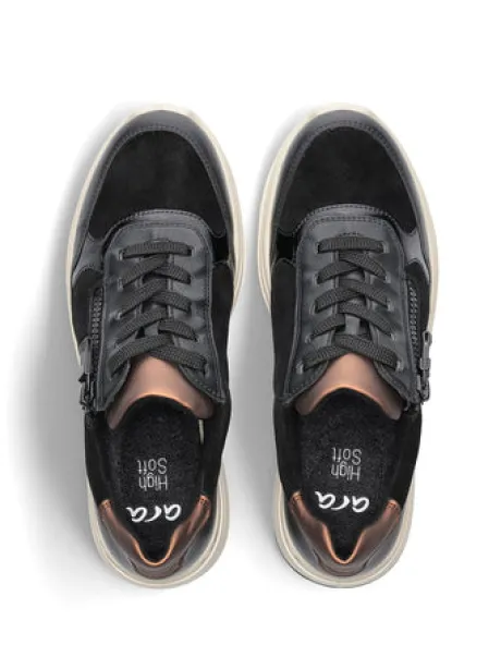 The comfortable and sporty trainers by ara are made from high-quality leather and are lined with terry cloth, which ensures a pleasant foot climate as it absorbs moisture perfectly and dries quickly. The removable footbed is also covered with terry cloth and can be replaced with other insoles at any time. The soft padding on the edge of the shaft also prevents unpleasant pressure points. Thanks to the lacing and the additional zip, the shoe can be perfectly adapted to your own needs. Finally, the trendy, non-slip wedge sole ensures good grip
