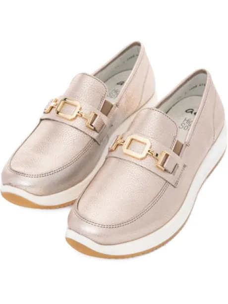 These feminine loafers combine elegant design with excellent comfort and will quickly become a favourite for style-conscious women. The elegant jewellery embellishment emphasises the feminine look. Thanks to the High Soft technology, the slip-on shoe offers a perfect fit: a combination of super-soft leather and a highly flexible outsole ensures an incomparably comfortable feel. The cosy terry cloth lining and the removable footbed, which is also covered with terry cloth, turn every step into a feel-good experience. The high-quality leather and non-slip sole ensure durability and safety.