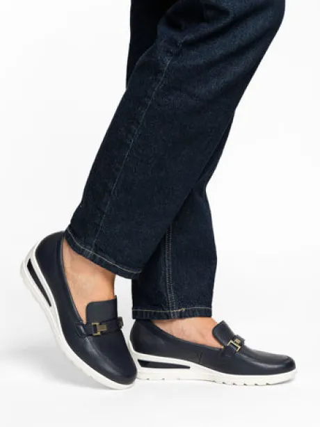 This feminine slipper perfectly combines style and comfort. Crafted from high-quality, soft leather, it offers not only an elegant look but also exceptional comfort. The removable, softly padded footbed, along with innovative HighSoft technology, provides excellent cushioning and fatigue-free walking – ideal for long days on the go. The non-slip sole offers secure footing, while the subtle wedge heel adds a sporty touch. A refined decorative buckle across the instep adds a fashionable highlight and makes the shoe versatile enough to be paired with a variety of outfits. Whether for everyday wear, the office, or a relaxed outing, this timeless shoe complements many looks and occasions.