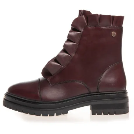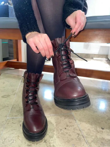 A stylish boot in deep Bordeaux leather that stands out with its warm tone and fine details. The model features a frill edge and decorative lace-up front as well as a zip on the inside. The soft insole and lightweight sole make it comfortable to walk in – even for long days in the city or at the office.
