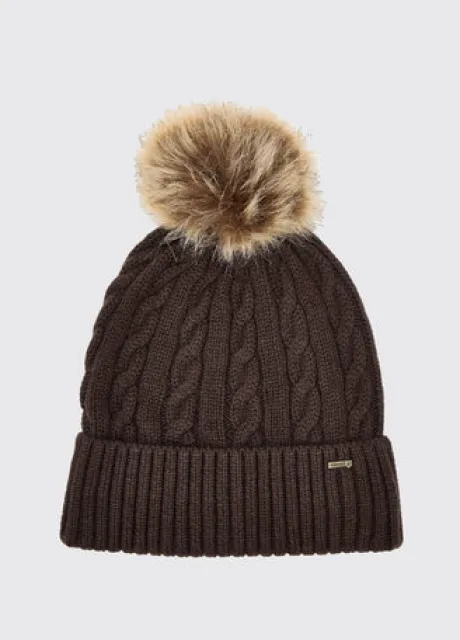 Our Forester bobble hat has a distinctive cable knit stitch, edged with ribbed hat band and topped with a beautifully soft faux fur bobble. The Alpaca, wool, cashmere and rayon mix yarn offers warmth, softness and breathability making this a real luxury purchase, and excellent gift.