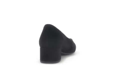 In a timeless closed-toe design, this court shoe boasts an easy-on fit with soft suede uppers and sturdy synthetic soles. A short block heel elevates smart-casual looks, while a classic yet simple shape complements evening attire.