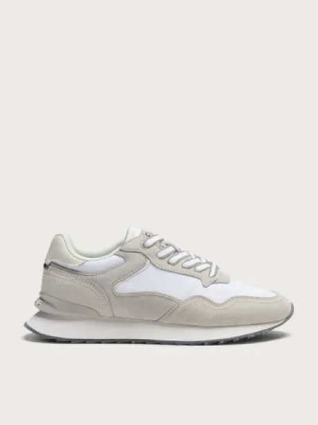 Retro-style sneaker in a mix of colours and materials. Logo detail on the back. Printed sole. Lace-up fastening.
