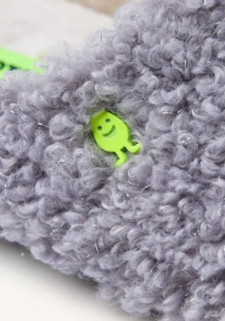 Step into cozy comfort with the Hot Potatoe 76915GR slippers! Featuring soft synthetic sherpa fur and a touch of glitter, these slippers bring fun and warmth to your feet. The cushioned, removable fur insole offers extra softness, while the flexible sole made from natural rubber and EVA chips ensures easy movement around the house. Made with polyester and recycled materials, they’re a playful choice for relaxing moments at home.