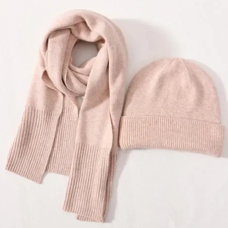 Stay warm and stylish with the Karen Koo Hat & Scarf Set! This set features a baby pink wool scarf and hat, perfect for adding an elegant touch to any winter outfit. Keep the chill at bay while looking chic with this must-have accessory set. One size fits all.