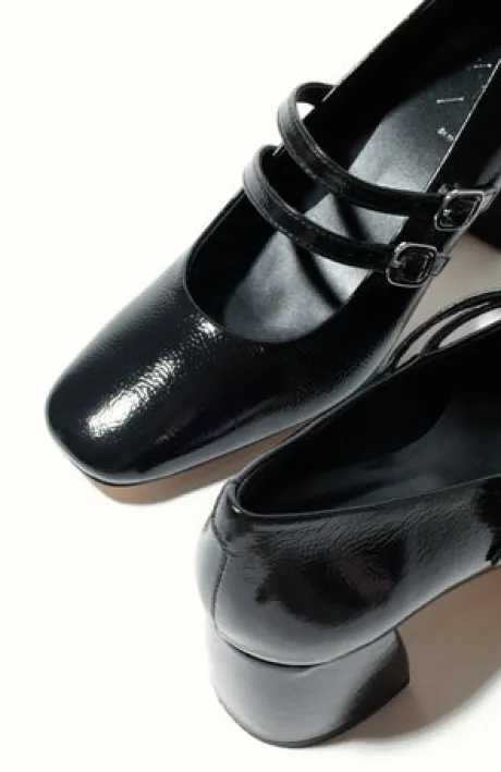 Manufactured and designed in Spain. This is a modern take on the Mary Jane, designed with a soft square toe, two slim buckle straps, and a stable 5 cm block heel. Made from smooth patent leather, it brings vintage charm into your everyday wardrobe with just the right lift. Whether paired with denim, tailored trousers, or flowy skirts, it adds a structured and feminine touch — a quietly bold choice for those who love timeless design with substance.