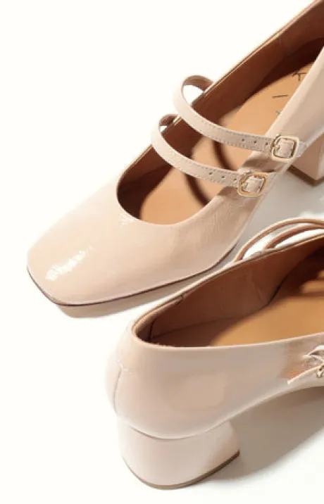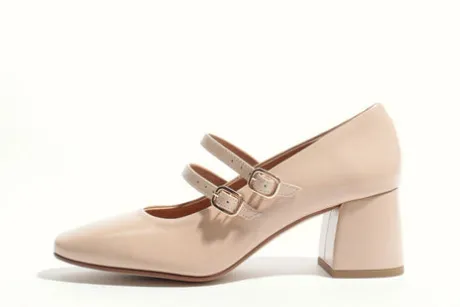 Manufactured and designed in Spain. This is a modern take on the Mary Jane, designed with a soft square toe, two slim buckle straps, and a stable 5 cm block heel. Made from smooth patent leather, it brings vintage charm into your everyday wardrobe with just the right lift. Whether paired with denim, tailored trousers, or flowy skirts, it adds a structured and feminine touch — a quietly bold choice for those who love timeless design with substance.