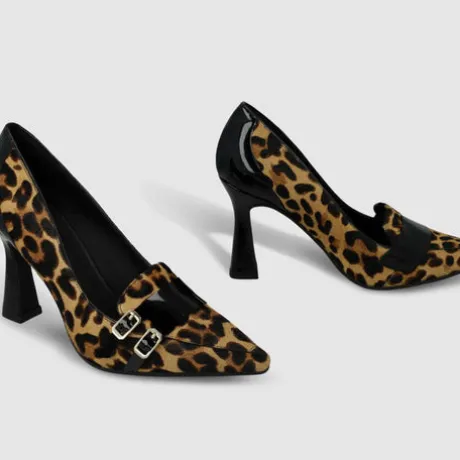 MORLAS-INO women´s pumps by LODI in leather combined with animal print. Detail of a band with metal buckles, elevating a basic design. A design crafted with a 9 cm geometric heel. Pointed toe and vamp detail. Leather-lined interior. Includes new gel insole for greater comfort in every step. Made in Spain.