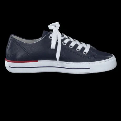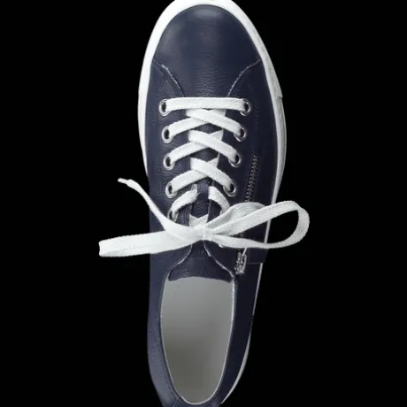 These first-class SUPER SOFT Pauls by Paul Green are an excellent piece for your shoe collection and the epitome of casualness. The model convinces with a clean look made of extremely soft, blue smooth leather. The attractive outsole in a trendy striped design also adds stylish accents. The red-blue rep ribbon on the lace gives the model an eye-catching accent. A super soft heel nestles comfortably against the foot, and the soft leather lining with TENCELƒ?½ fibers ensures a pleasant feel. Run through your day in comfort and convenience. Definitely the perfect sneaker for your fashionable street styles!