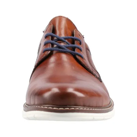 Rieker mens smart casual shoes in tan with navy blue accents. These feature a two-tone sole and stitch detail.