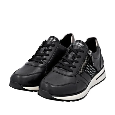 Style and comfort – the perfect duo! These Remonte low-top sneakers are made of smooth leather come in a classic color scheme that simply fits anything! The clever combination of lacing and zipper makes it easy to put on and take off the shoe. A flexible and cushioning sole and the padded and removable insole are further arguments for this model. The sneakers are equipped with a light micro-velour lining.
