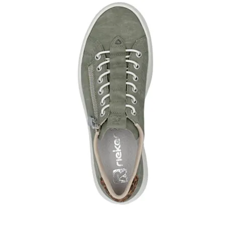 Always one step ahead! These khaki Rieker low-top trainers for women are super casual and totally comfortable. This shoe is constructed in the stitchdown style, which makes it particularly robust and flexible. The zipper makes the shoe easy to put on and take off. With the shock-absorbing and ultra light platform sole, your feet will enjoy the best walking experience at every step. In addition, the extra soft cover sole provides additional comfort. For your Rieker moment!