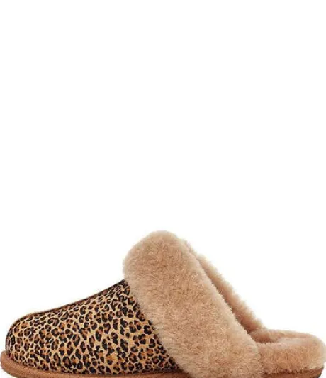 From UGG¸, the Scuffette II Speckles Leopard Print Calf Hair Fur Collar Mule Slippers feature: