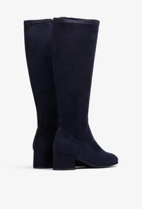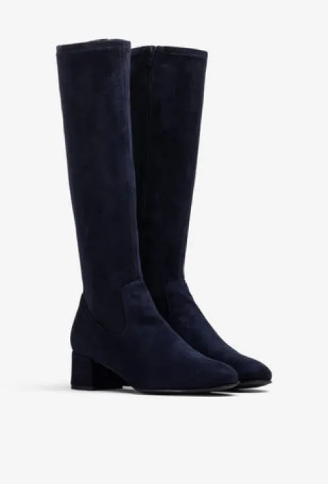 Square toe boots made in leather and faux leather stretch fabric with a zip on the inside. Matching tone wide heel that is 6cm high. A light, flexible and non-slip rubber sole.