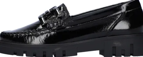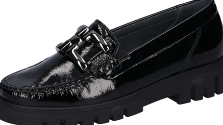 The H-Serena moccasin by Waldläufer is a masterpiece of shoemaking for women who value quality and style. Its patent leather in classic black exudes elegance, while the leather lining and leather insole guarantee a luxurious feel. Thanks to the innovative air-cushioned sole (Rubflex), you can enjoy every step in this shoe with no fastener. With the width H, the H-Serena is the ideal companion for anyone looking for comfort and beauty in one shoe.