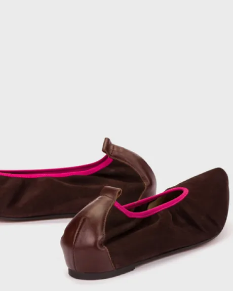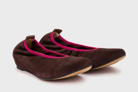 TRIANA 32 ballerinas crafted from black mixed leathers with a contrasting blue trim. This comfortable and versatile design features a pointed toe and a subtle contrast of smooth leather and suede, enhanced by the blue edge along the topline. The low internal wedge subtly elongates the foot without compromising comfort. The MemoryGel insole ensures cushioned comfort with every step