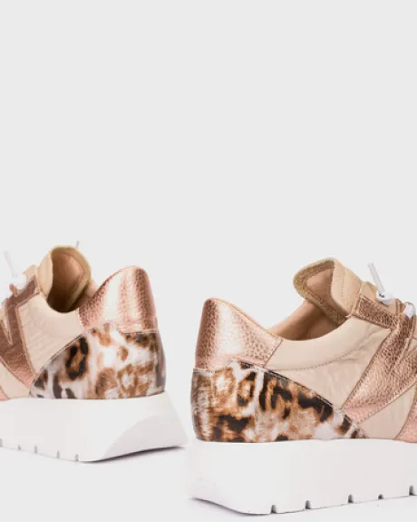 Wonders Beige and Leo Print Wedge Trainer|A24100B